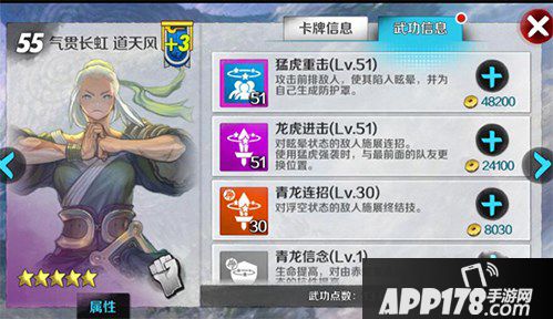 总结:道天风的碎片获得非常容易,所以用长远的眼光来看具有提升的空间,并且技能附带群晕效果,这使得卡牌间的连招变得更为容易,唯一的缺点就是出手较慢,而群晕的概率也相对较低,作为一张A资质卡牌,道天风的基础属性跟S级也相差不多,所以是一张比较适合前中期培养的卡牌。