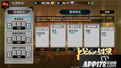 阵法玩法是《战斗吧剑灵》新版本里非常有趣的内容,为大家提供一个战斗BUFF,增益强化卡牌的属性能力。简而言之,阵法可以让大家可以根据敌方不同的阵容来针对性地选择阵型,比如说,在面对对方高格挡的阵容时,玩家可以选择前排普遍增加穿刺的阵法来对抗格挡;在面对敌方枪手较多的阵容时,可以选择为我方四号位加生命值的阵法。通过不同的阵法可以给阵容中的不同位置带来不同的属性加成来增强卡牌的实力,让本来劣势的卡牌有机会翻盘取胜。阵法玩法考验的是玩家的策略思维,怎么样合理布局每一张卡牌的站位,才能将收益最大化。