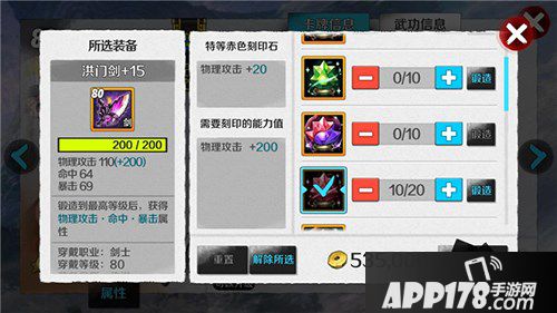 以80级装备为例(200点刻印值)镶嵌10个特等赤色刻印石,你可以在单件装备上获得200点物理攻击的收益。