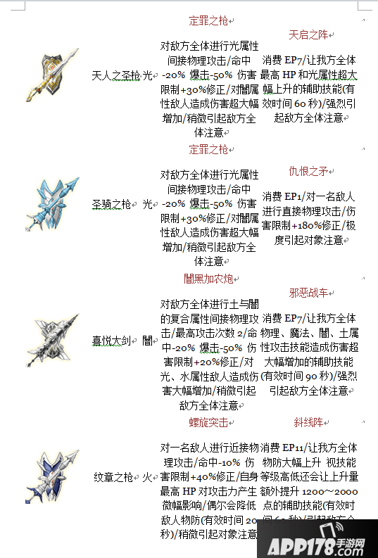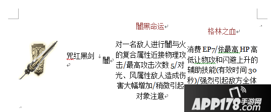 咒红黑剑可以提供大量的闪避和物攻,而且是依照最高HP数值者去转换,所以在天人之圣枪BUFF下有更好的效果。专用最多5回可以用来收集EP使用。