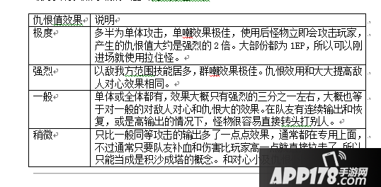 玩家有抗打能力后,就是要处理仇恨的问题,毕竟再坦吸不住怪也没用。仇恨因为翻译的问题分为引起敌人注意、仇恨和对心3种仇恨值制造,引起敌人注意的仇恨值效果为极度>强烈>一般(只有引起敌 人注意说明)>稍微这几种。玩家最好要有强烈等级的武器会比较好坦一点。