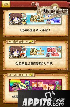 《战斗吧蘑菇君》中的扭蛋可以通过魔晶石和金币来进行抽取,魔晶石主要用于抽取强力武器装备,金币则可用于抽取外观,并有一定的几率获得较强武器。