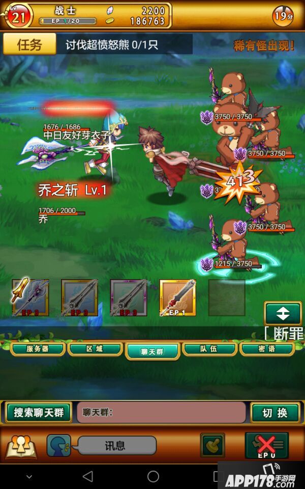 这张地图一共有二种稀有怪,一种是定点刷出的彩虹兔,特色是经验值不错。另一只超愤怒熊,虽然说是稀有怪,不过强度已经算是BOSS级。所以战斗难度比较高。