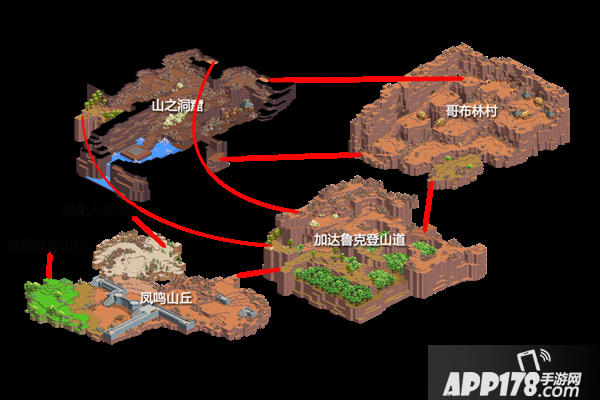 风鸣山丘处于草原区域以及山岳区域的交界,靠瞭望台山丘这一侧,登场怪物以食人草以及隘口的风鸟为主。岩蜥蝪以及等级比较高的红热果冻,则分布在关卡另一侧邻接加达鲁克登山道的区域中。
