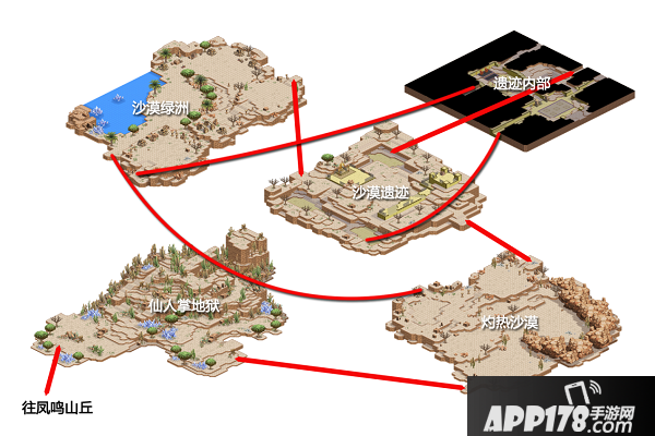 仙人掌地狱是进入沙漠地区的入口,它连接了风鸣山丘以及灼热沙漠二张地图。虽然从仙人掌地狱回风鸣山丘可以直接走传送点,不过从风鸣山丘回到仙人掌地狱,必须透过传送使提摩进行传送才能回到沙漠地区。