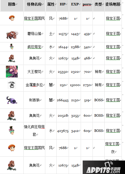 除去菇宝王国国民,这里登场的小怪,经验值最少也有1443,就收益来说其实还不错。没有活动的时候,来这里加减打赚赚经验值以及金币其实也OK,不过最大的缺憾在于这里适合挂机的点很少。