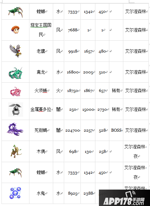 艾尔涅森林在游戏中算是比较中期的地图,如果玩家综合能力不足8万的话,来打这张地图会比较辛苦一些。因为登场的敌人有一部分攻略等级比较高,例如禽龙以及死钳蝎,尤其是死钳蝎的部分。