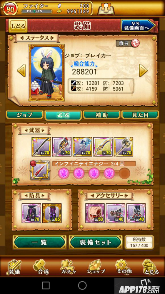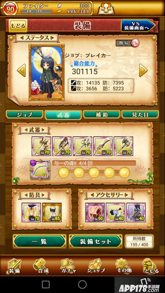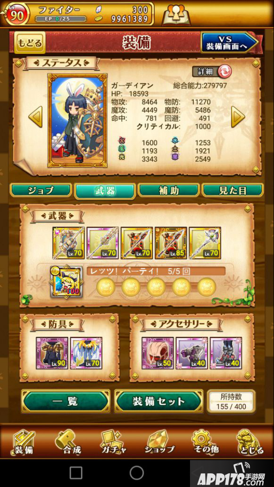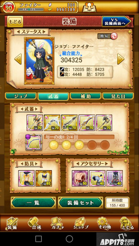我先介绍下,这位亚夜子小朋友,该帐号日服游戏时间是两个月,目前的装备状况如图所示。简单来说,他的经历就是一届草民翻身怒做团队核心的故事(这吹几分?),他自制力很强,说不抽就不抽,那次见他,他还是个只能天天在副本里躺尸混活动的死咸鱼,再见到他就是这次总选池之后,整个人翻天覆地的变化,提高的裤腰带,脸上的黑框眼镜,以及帐号里多出的那一把把羡煞众人的武器。那期总选,他投入了2个月的成果1000钻(国服换算6万钻),成为如今的多面混本王。我觉得,新人是可以以他为一个标杆的,不是说你做到他这样就会和他一样,你可能会比他次当然也可能会比他强,主要的,是他给咱们展现了一种玩法,一种可能,一条萌新短时间速成大佬的路,咱们从中汲取经验即可。