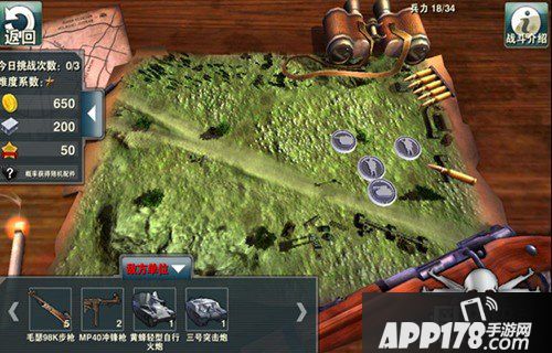 在选择战役关卡界面可以看到当前已经通关和未通关的目标关卡,点击关卡后可看到当前敌军的部队配置及部队部署,作为一个优秀的指挥官,应该根据敌军的部队配置已经阵型来安排合理的战术。