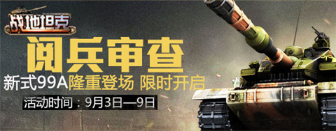 《战地坦克》在媒体及游戏内举办的大阅兵活动正在火爆进行,国产顶级坦克99A,奢侈的数码奖励都将成为你的囊中之物!两大活动截止至9月9日结束,不要错过哦!