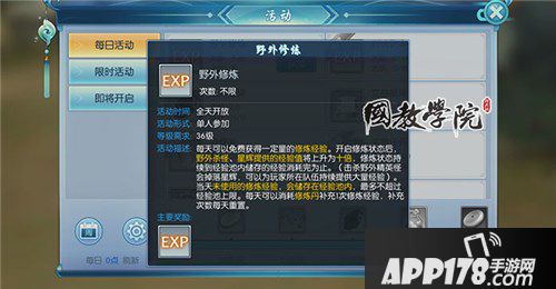 各位少侠可以通过活动界面中的野外修炼界面开启十倍经验状态。修炼池中可供开启的经验有一定的上限,每日恢复的经验也可以累计,最多可以累计7天。在当前的等级水平中,野外修炼每天经验池增加的经验为800000经验。