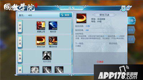 槐院的绝技焚世刀诀,技能CD22秒,释放距离4米,使用时快速挥刀,对附近敌方单位造成173%基础伤害+324点固定伤害,释放过程持续霸体,可以移动。