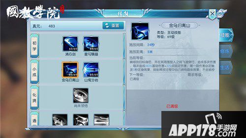 离山的绝技金乌归离山,技能CD24秒,释放距离5米,瞬移到目标身后,并在其周围的敌人之间快速飞行,造成多次伤害,每次造成183%基础伤害+372固定伤害,第一段伤害必定触发3秒定身效果,技能释放过程霸体。