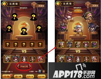 点击比武场建筑进入比武场。比武场是按匹配方式进行的的,点击开始匹配,系统会自动按一定规则为主公匹配对手。每次战斗,都需消耗次数或者入场券(PS:次数:每天6:00~24:00每隔两小时恢复1次,入场卷则可无限购买)