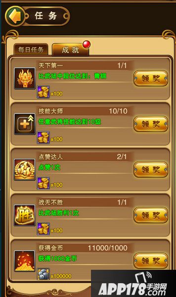 在任务功能下,打开成就界面,已完成的成就可获取好多好多金币呢!