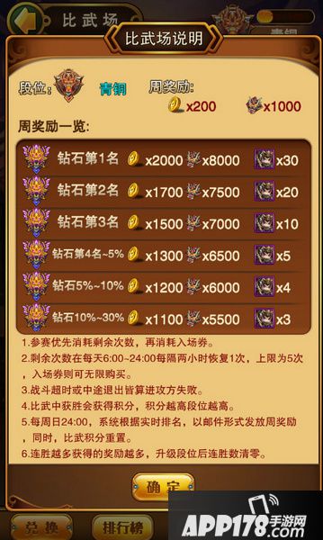 每周日24;00,系统会根据实时排名发放周奖励,可获取海量金币!