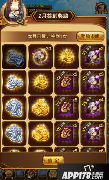 在主界面右上角每日签到功能中,玩家每天可签到一次领取奖励。