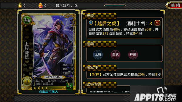 上杉谦信的越后之虎,提升自己的武力、移动速度,持续回血。有这些即提升武力又能保命的技能,在战斗中即使孤军深入,也当然是轻轻松松的。