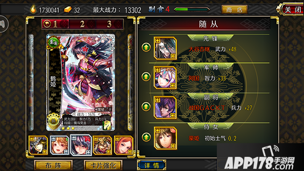 金卡女性很稀有,所以带上5张鬼银的侍女卡,初始1.5的士气够我们做很多事情了。