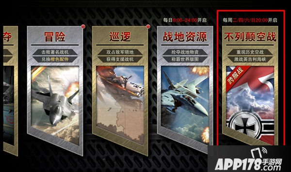 不列颠空战玩法:每周二、四、六和周日晚间20点活动开始,活动开始之前十分钟,也就是19:50分之前提前报名才有参与活动的资格。进入活动后,系统自动匹配阵营。