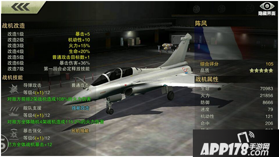 第五,阵风,随4.这个战机基本上大家都在用。这是我的长机,走的暴击路线。竞技场积分每天可以换5个碎片,而且活动里也经常有的。现在已经改5了,伤害那是杠杠的。