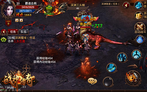 《战神传奇》的游戏界面很是丰富,各种功能十分齐全,丰富任务和礼包助力,毫不逊色于任何一款产品。从预创建角色到进入游戏,不断有贴心提示告知玩家们下一步该做些什么,新手指引一步到位,让整个游戏过程变得十分轻松!用户界面上的各大功能也容易找寻,自动寻路、挂机打怪、地图快传……以及各个游戏系统按钮的排列,一目了然。