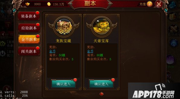 玩家到达80级就可以刷【天帝宝库】金币副本,每天可以免费刷五次,可以获得大量的金币。