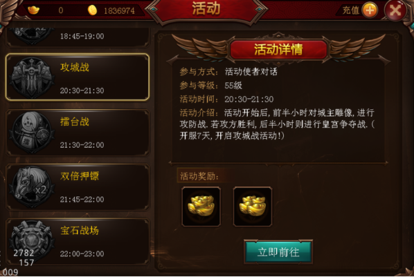 攻城城是每天的重头戏,因为王城就是实力的象征,而且获得王城公会的会长会获得王城城主的称号,要多拉风就有多拉风,所以王城战,每天都要参加,要的就是激情,要的就是热血,要的就是拉风,而且还有250元宝的奖励可以拿,相信大家都不会错的。