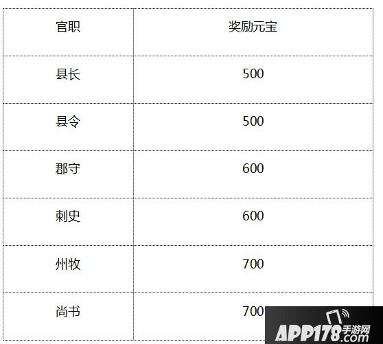 活动内容:累计充值一定元宝,将自动开启官职成长基金,享有300%元宝返利!