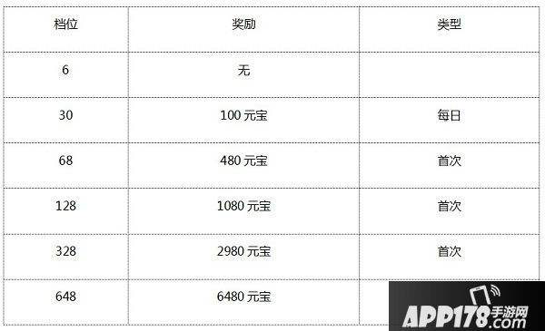 活动内容:首次充值不同额度,可享受多倍元宝赠送,越送越多!