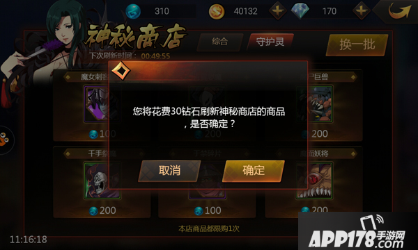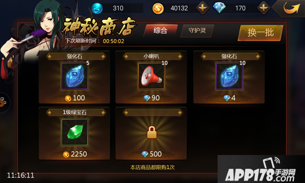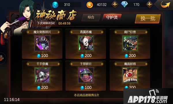 玩家可以花费金币或者钻石从神秘商店购买商品,但是每个商品的购买次数只有一次。购买一次之后,就需要等待刷新之后才能再次购买。