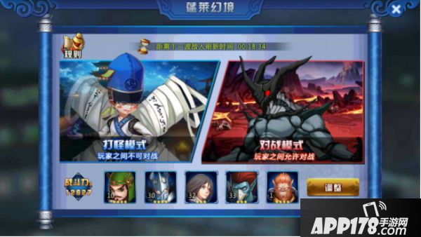 蓬莱幻境中分为两个挑战模式:打怪模式与对战模式