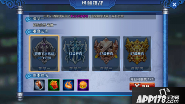 想要快速升级,挑战经验副本当然是必选关卡啦。在《镇魂街:对决》中玩家等级达到28级,即可开启经验副本,玩家可以在主城界面中点击“历练”选择“经验挑战”副本。目前经验副本分为四个挑战难度,玩家达到相应等级即可挑战更高难度的经验副本。