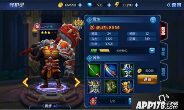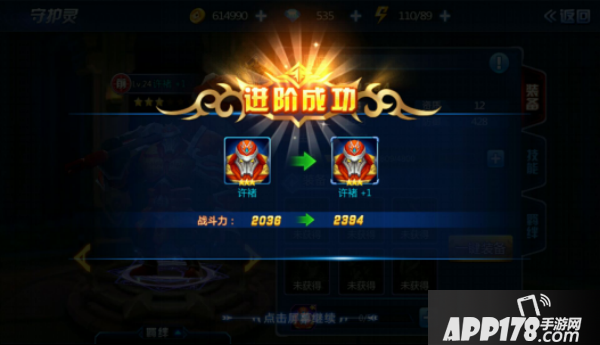 当所有装备都获得了便可进行“进阶”啦,如下图进阶成功后守护灵的战斗力便得到一定的提升哦。操作非常简单的呢。
