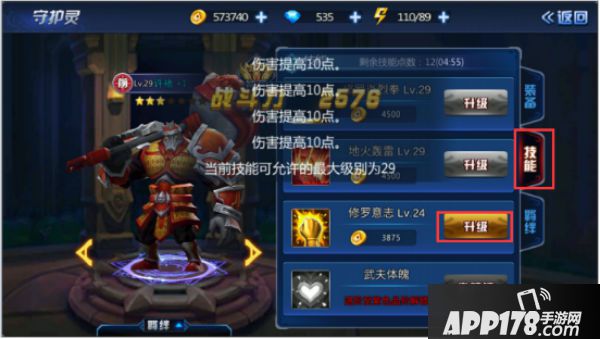 将守护灵等级升级后就可以去升级技能啦,看下图点击“技能”再点击技能界面的“升级”。伤害就这么一次次提升啦!