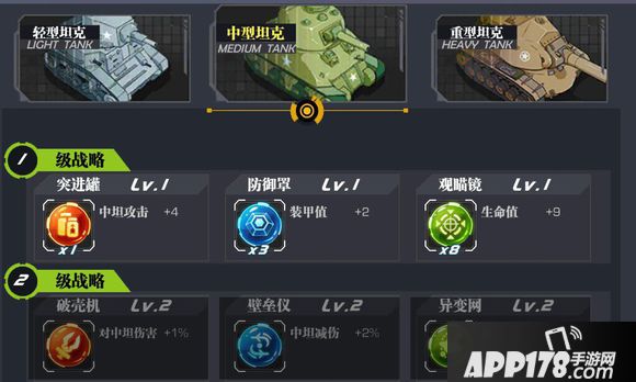 【战略系列】其实我想说前面都是次要,战略的巧用才是重点,通过一测,二测的实战我个人认为红色战略主带攻击加成,像什么轻坦加伤啊,重坦,中坦加伤啊,除了针对局尽量带攻击加成,无论那种类型伤害保持不变,毕竟三级添加战略不限,五级四级战略只能装一个的情况下建议攻击和穿甲有限,在对各种类型坦克造成的伤害平均的情况下,还能对护甲厚的中坦重坦进行加伤。蓝色战略当然是以护甲和部分坦克部位护甲加成为主,三级建议护甲加成,四级五级建议护甲加成+后装甲加成和护甲加成+侧装甲加成,这样能全名保护自己,绿色战略这个就要分坦克类型进行添加,比如轻坦建议填装速度,视野,攻击力的战略,中坦建议开火速度,视野,攻击力的战略,重坦建议隐藏值,暴击,攻击力的战略,因为重坦的视野成长往往要高,所以可以不用视野战略。其目的就是为了能够给予伤害同时提高防御和各个性能!