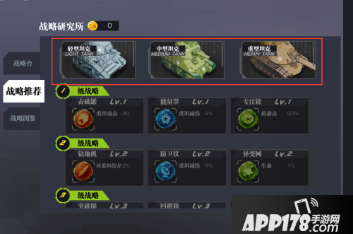 2、在战略推荐里,玩家可以通过点击轻型坦克、中型坦克、重型坦克,直接查看到该类型坦克的推荐战略。