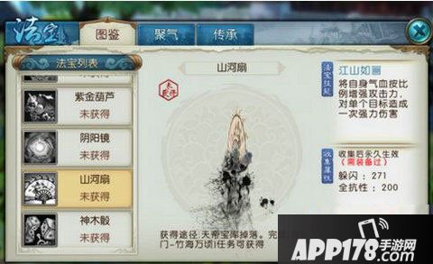 以上就是关于法宝山河扇的介绍了,希望对大家能有所帮助~想了解更多有关诛仙手游的精彩资讯,就马上来关注APP178诛仙手游专区吧~小编在这里等着你们哦~