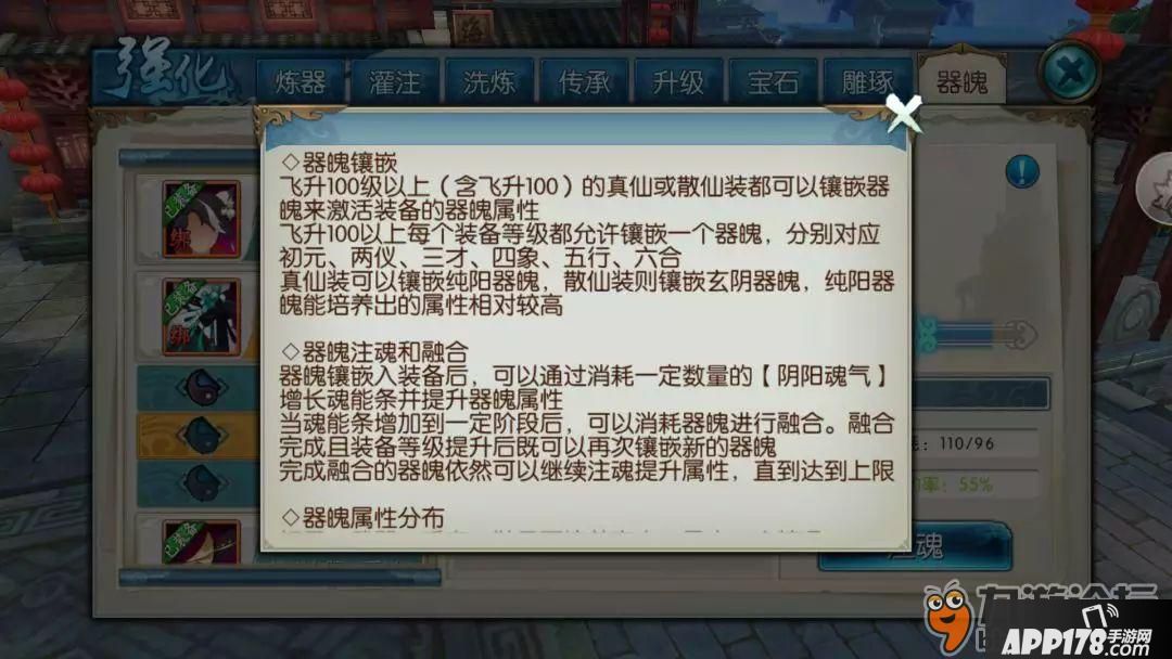 如图,散仙装备进行器魄镶嵌后,可以通过消耗阴阳器魄进行注魂,提高器魄属性,该材料商城和新副本均可获得。