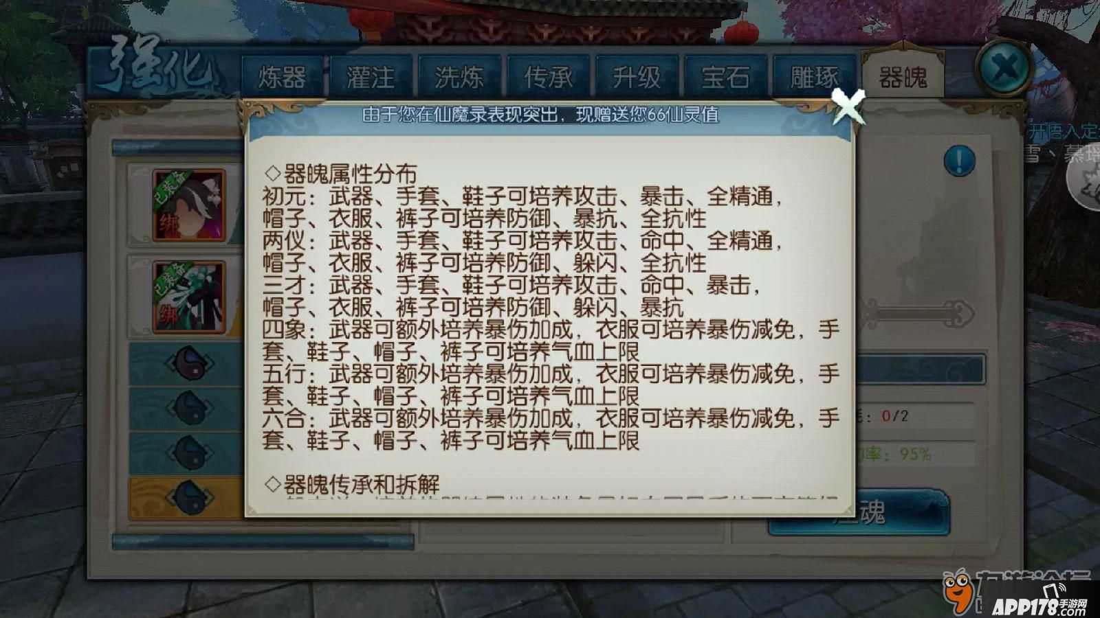 器魄注魂与真仙不同的是,散仙装备注魂存在失败几率,从第一次95%的概率,逐步削减5%概率。