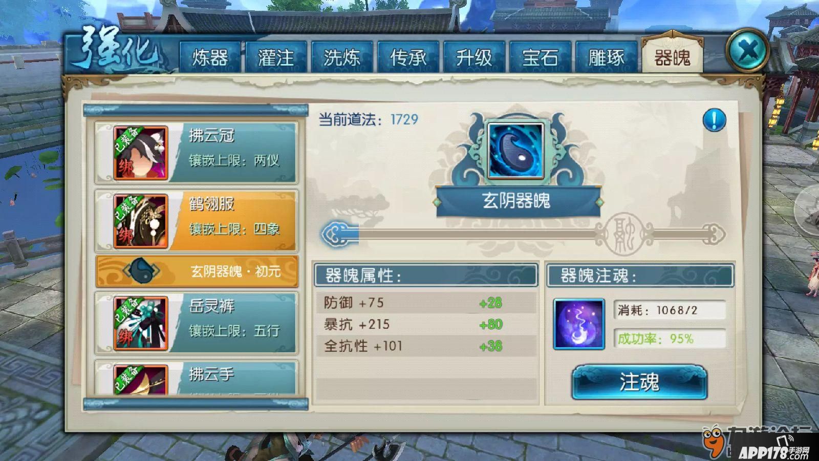 这次大更,身上6件装备都多了一个器魄系统,增加额外属性。