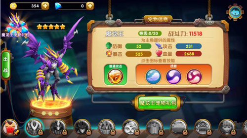 游戏中的宠物数量多达数十只,每只宠物都有各自不同的属性与技能。首先,宠物自身有着相当的战斗力,并拥有最多3个战斗技能。其次,它们会为主角提供一定的属性,增加主角的防御、攻击、暴击、血量等。就这样,宠物已经是大大增强了你在关卡中的优势。