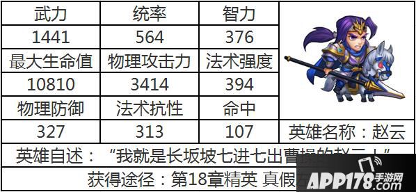 (普通)单枪匹马:赵云击飞面前一排敌方单位,并对他们造成110%的物理伤害。附加伤害421(下一级:544)被波及的地方单位在正常战斗中都会减少28(下一级:36)点最终免伤