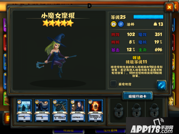 注:英勇卡牌不要马上就用,在双子60能量之前,不要套英勇,小魔女作为主攻手,即使挂掉也没关系,因用她只是为了偷能量+变羊+攒卡,主要为了85耗的群体魔法*2 和60耗的野蛮重击(直接扣除40%最大HP),吸能量卡和100耗的群体魔法*3也不错。她就没有垃圾卡!!!!