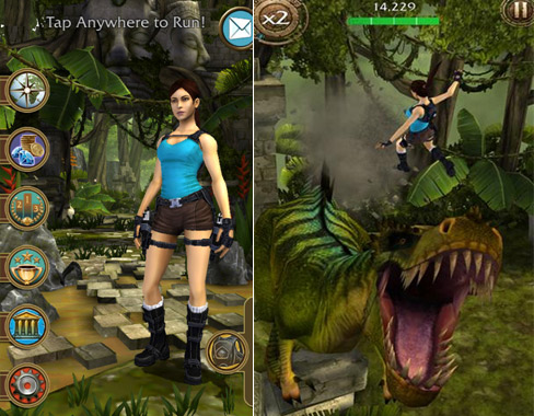 《劳拉:遗迹逃亡 Lara Croft: Relic Run》是开发商 Crystal Dynamics 工作室和日本游戏大厂 SE 联合推出的一款跑酷新作,画面十分气派。在游戏的部分场景和主角的一些动作里,我们似乎看到了一些《神庙逃亡》的影子,但在这样的基础上,更吸引玩家的眼球的是其它丰富的要素,包括多样特技动作,摩托车等坐骑,令人震撼的场景,史诗版 BOSS 战等,都将出现在本作中!无独有偶,《劳拉:遗迹逃亡》中竟然也有恐龙场景,看样子恐龙最近真心够火!