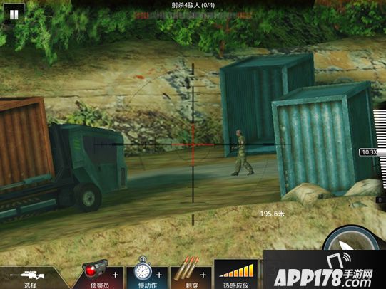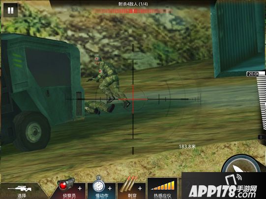 战斗机击毁后。就再次将视野转回至右下角的卡车车头附近,第四个敌人就会在此出现。