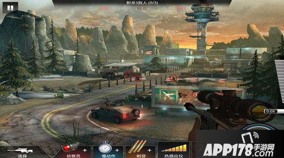 在本任务中,因有两名敌人身穿装甲戴头盔,而第三名敌人为狙击手,故显得棘手了许多。所以要先确定攻击顺序。此任务的攻击顺序是从左至右,即先从狙击手下手。狙击手起初是从车后走出来的,我们并不需要着急对其进行击杀,待其站住后,再击杀,确保一击毙命。