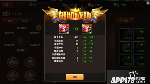 上一篇提到了英雄将6件装备全部穿戴之后即可进行进阶