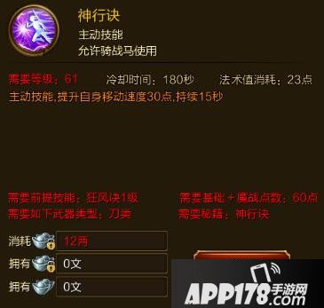 以上就是小编为大家带来的征途手游神行诀技能介绍,希望大家喜欢。更多精彩的游戏攻略,敬请继续关注APP178手游网。