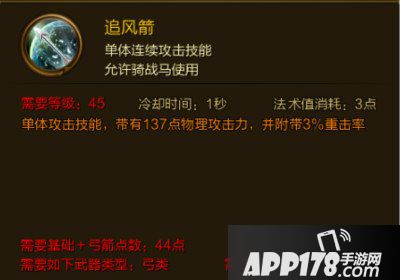 以上就是小编为大家带来的征途手游追风箭技能介绍,希望大家喜欢。更多精彩的游戏攻略,敬请继续关注APP178手游网。